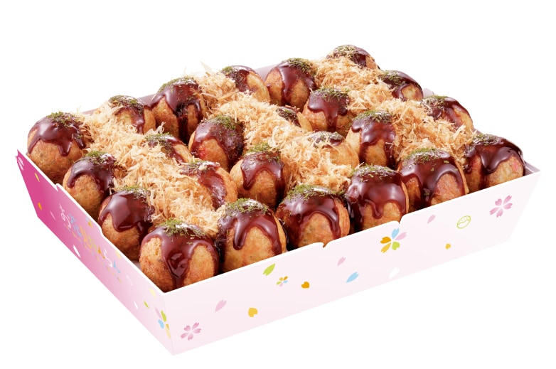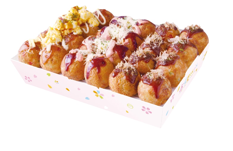 桜をイメージした特製パッケージ入りのたこ焼は、お花見が盛り上がること間違いなしです☆