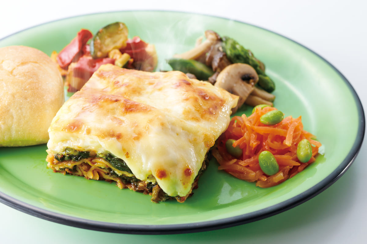 「自由に選べるワンプレートセット」では、ラザニアやハンバーグなどのメインディッシュ5種と、キヌアやクスクスなど流行のヘルシーなデリ(サイドメニュー)8種の全13種の中から、メイン1つ、デリ3つを自由に選び、280通りにもなる組み合わせの中から自分だけのワンプレートメニューを作れるメニュー。
