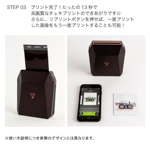 スマートフォンで撮影した画像をチェキプリントにできるプリンター。