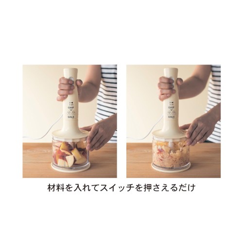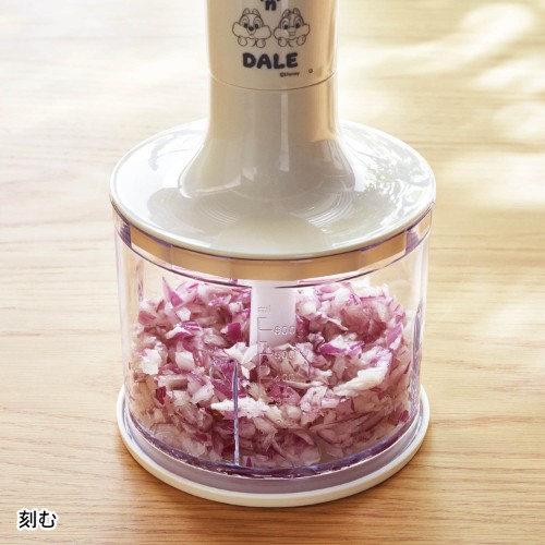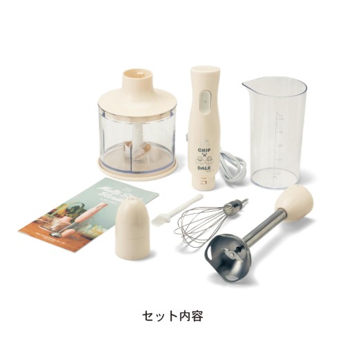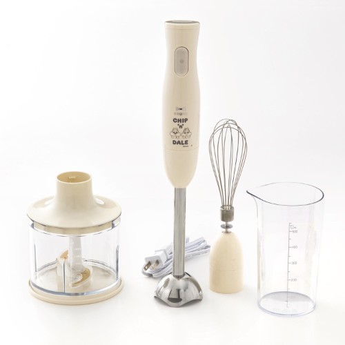 アタッチメントの付け替えで、料理の下ごしらえから、ポタージュ、離乳食作りなどが簡単にできる「チップ&デール」デザインのマルチスティックブレンダー。