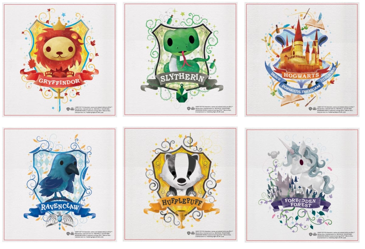 デザインは、ホグワーツ魔法魔術学校4寮のシンボルとなっている動物などがパステルトーンでかわいらしく描かれた希少なデザインです。
