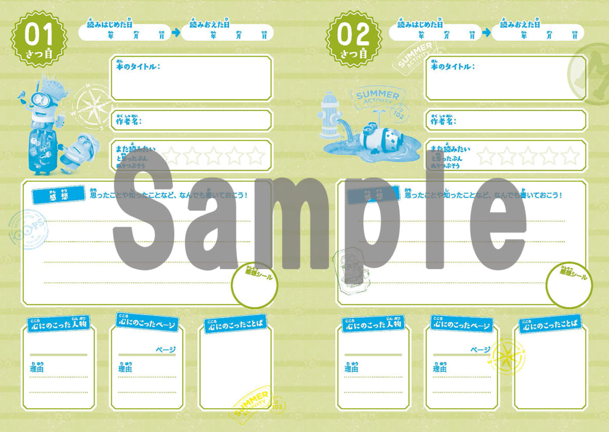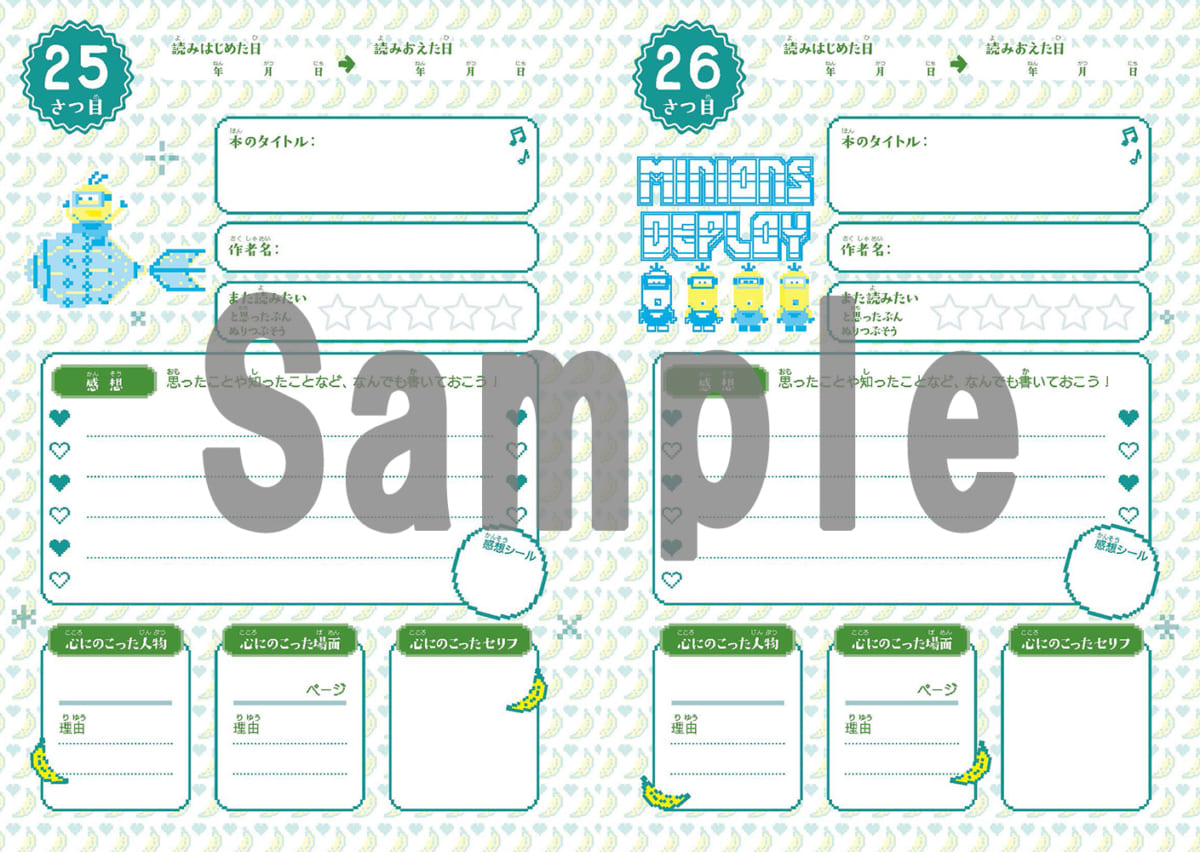 シールを貼る達成感で読む意欲を引き出し、読んだ本を思い返しながら記録することで、いっそう身になるミニオン特製読書ノートに仕上げられています。