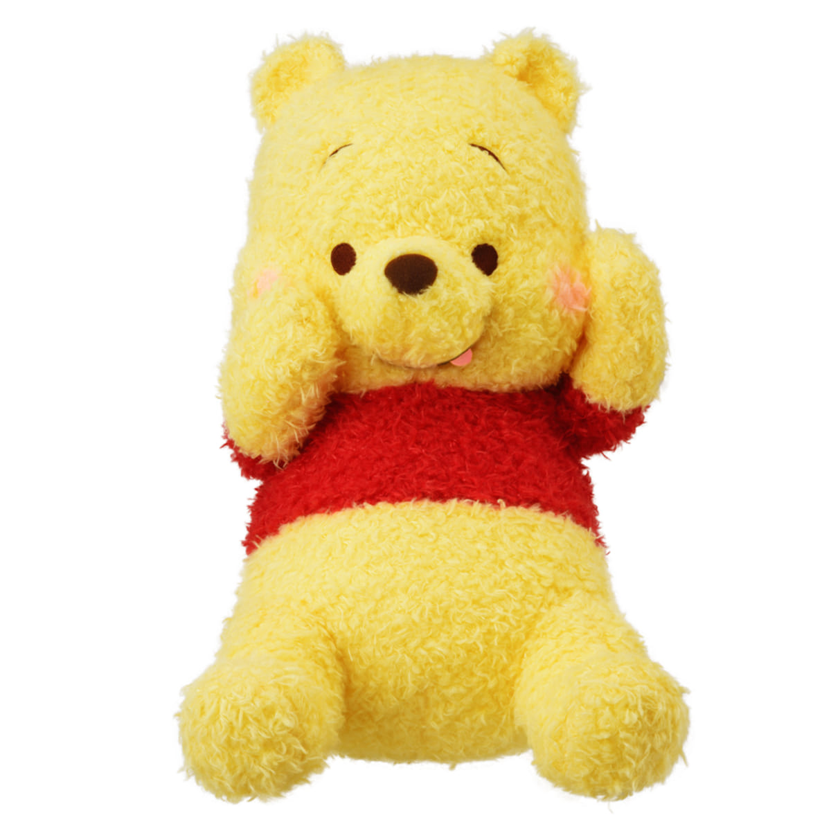 赤いほっぺシリーズの「くまのプーさん」のぬいぐるみ。