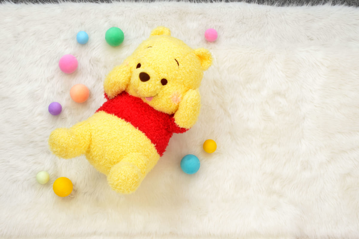 ふわろん生地を使った「くまのプーさん」のぬいぐるみ。