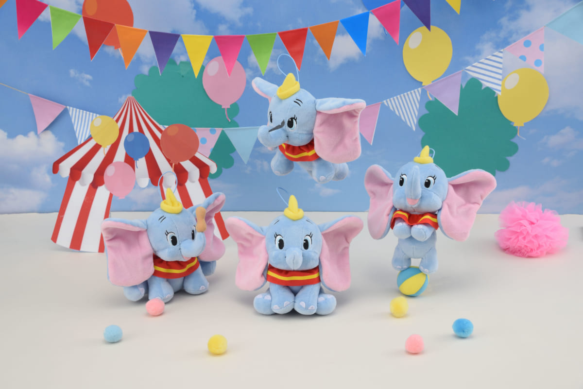 いろいろなポーズがキュートな「ダンボ」のぬいぐるみ。
