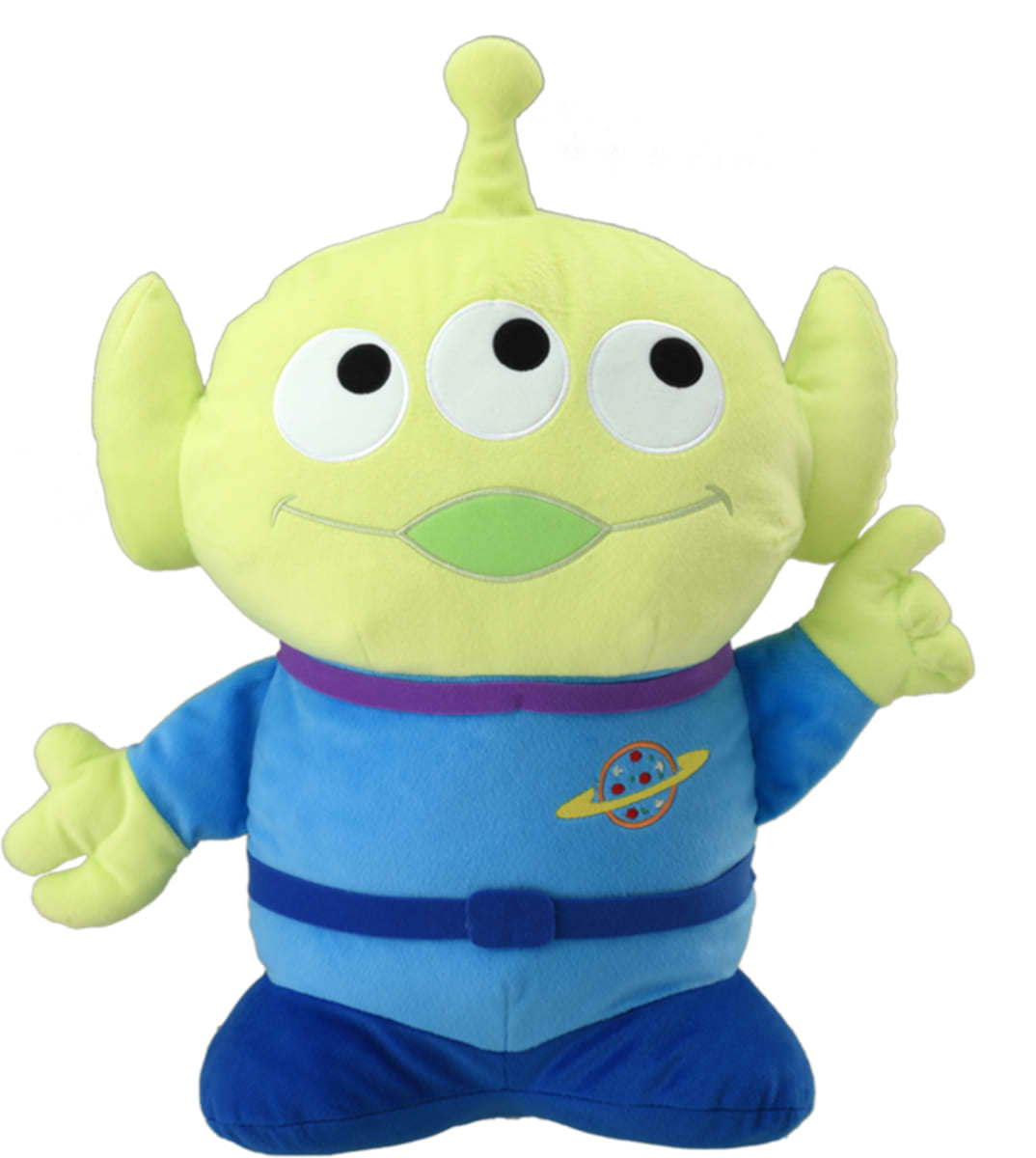『トイ・ストーリー』に登場する人気キャラクター「エイリアン」の大型サイズのぬいぐるみ。