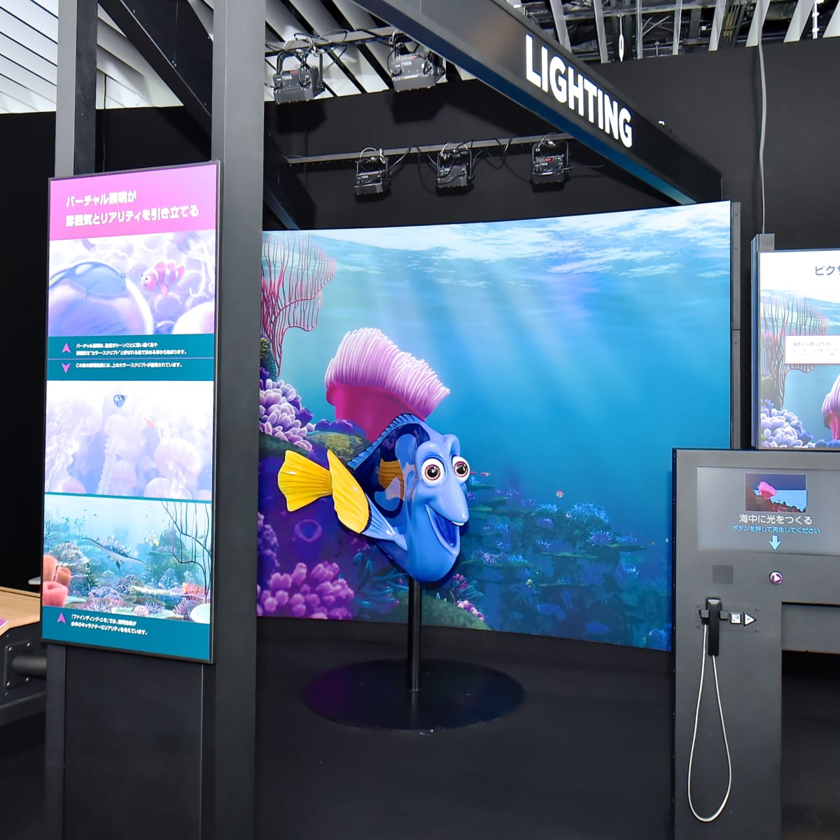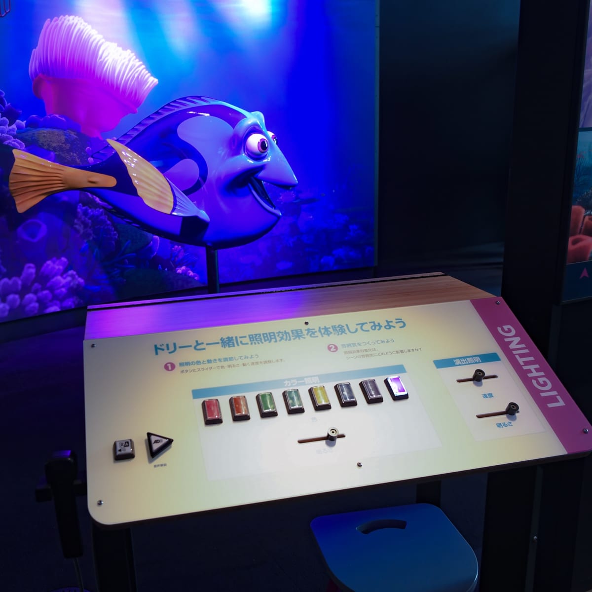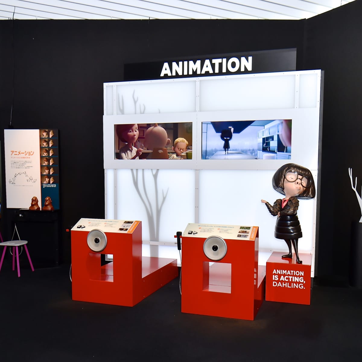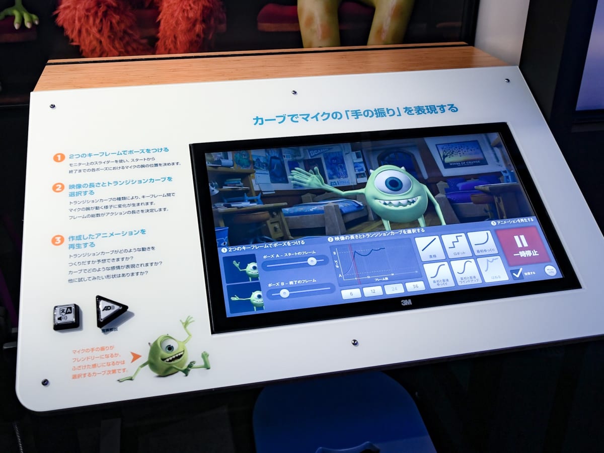 PIXARアニメーション作品を支える科学について、実際のアニメーション制作のカギとなる8つの工程を体験しながら学べるハンズオン展示。