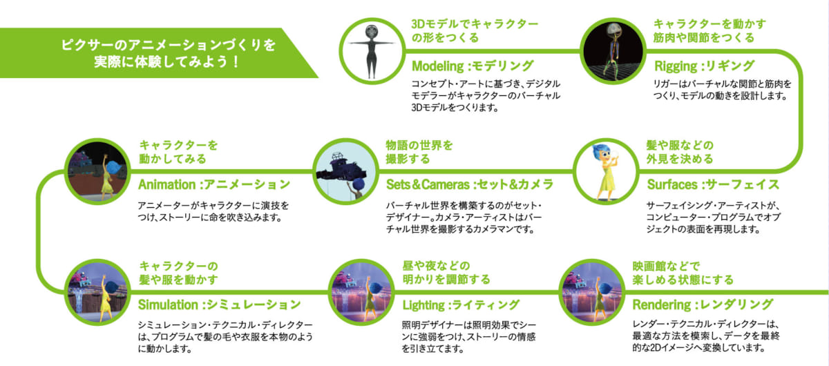 これまで明らかにされてこなかったPIXARの作品づくりのひみつを、人気作品の制作工程を実際に体験しながら紐解いてゆきます。
