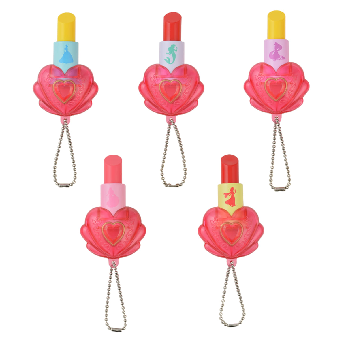 『シンデレラ』のディズニープリンセス「シンデレラ」、『リトル・マーメイド』のディズニープリンセス「アリエル」、『塔の上のラプンツェル』のディズニープリンセス「ラプンツェル」、『眠れる森の美女』のディズニープリンセス「オーロラ姫」、『アラジン』のディズニープリンセス「ジャスミン」の全5種類がラインナップされています。