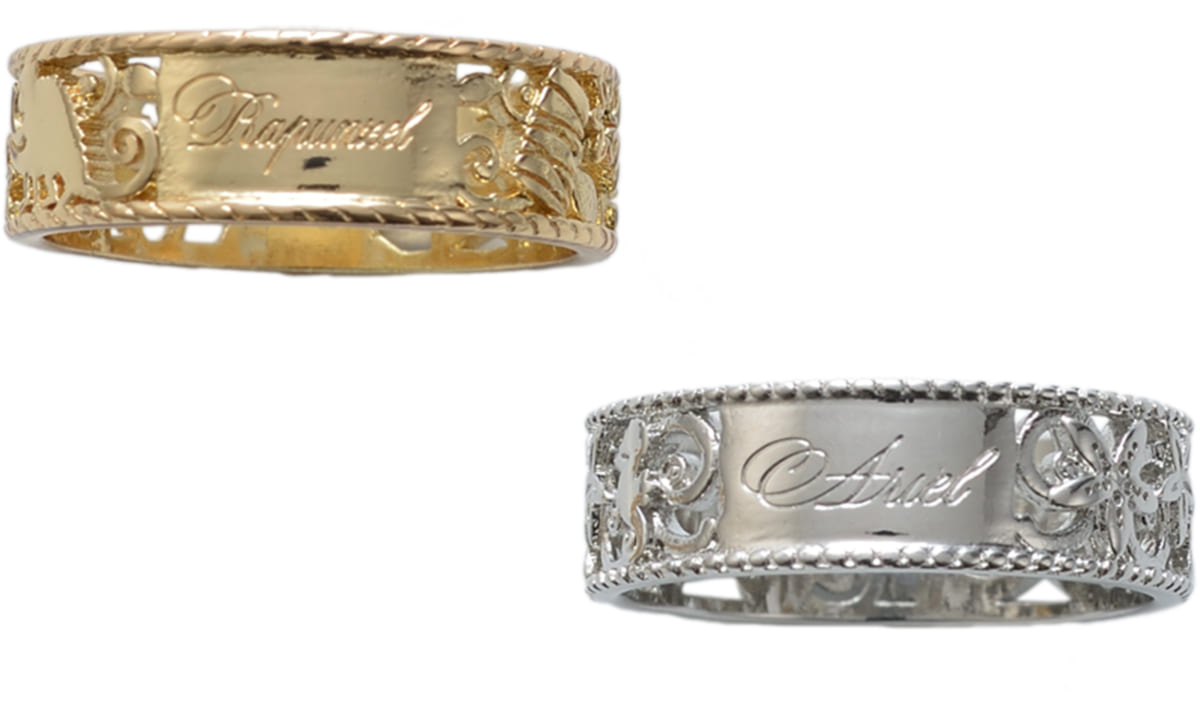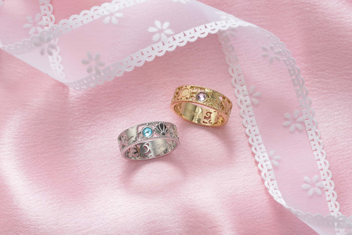 『塔の上のラプンツェル』のディズニープリンセス「ラプンツェル」のゴールドと、『リトル・マーメイド』のディズニープリンセス「アリエル」のシルバーの全2種類。
