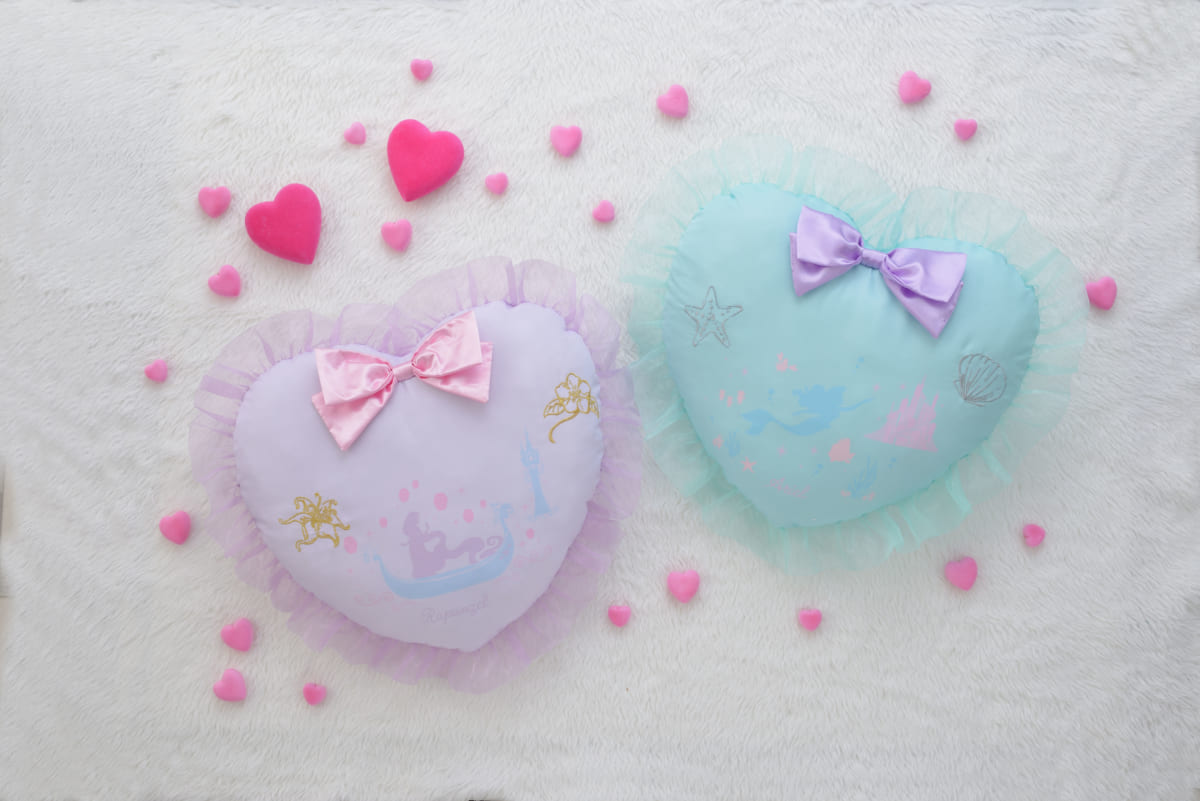 「ディズニープリンセス」のシルエットが可愛いハート型のクッション。