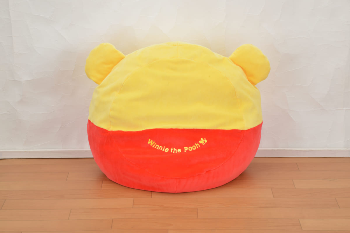 くたっとした「くまのプーさん」モチーフの大きなクッション。