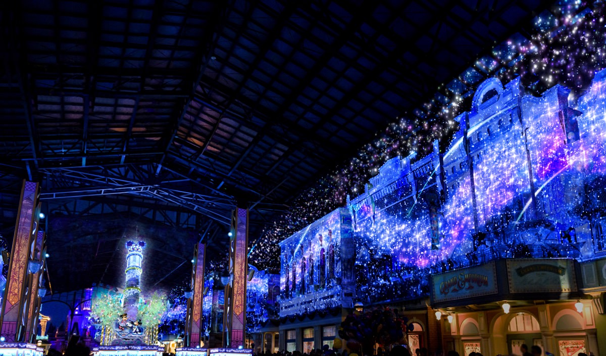 さらに東京ディズニーランドのウィッシングプレイスは、夜になるとワールドバザール内に映し出す七夕ならではの映像や音楽、光の演出によって幻想的な“スターライト・ウィッシングプレイス”に様変わり!