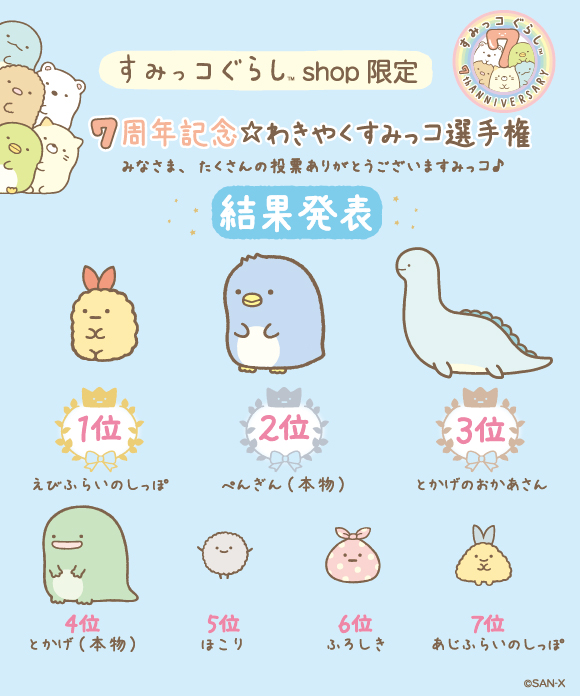 すみっコぐらしshop「わきやくすみっコ選手権」結果発表