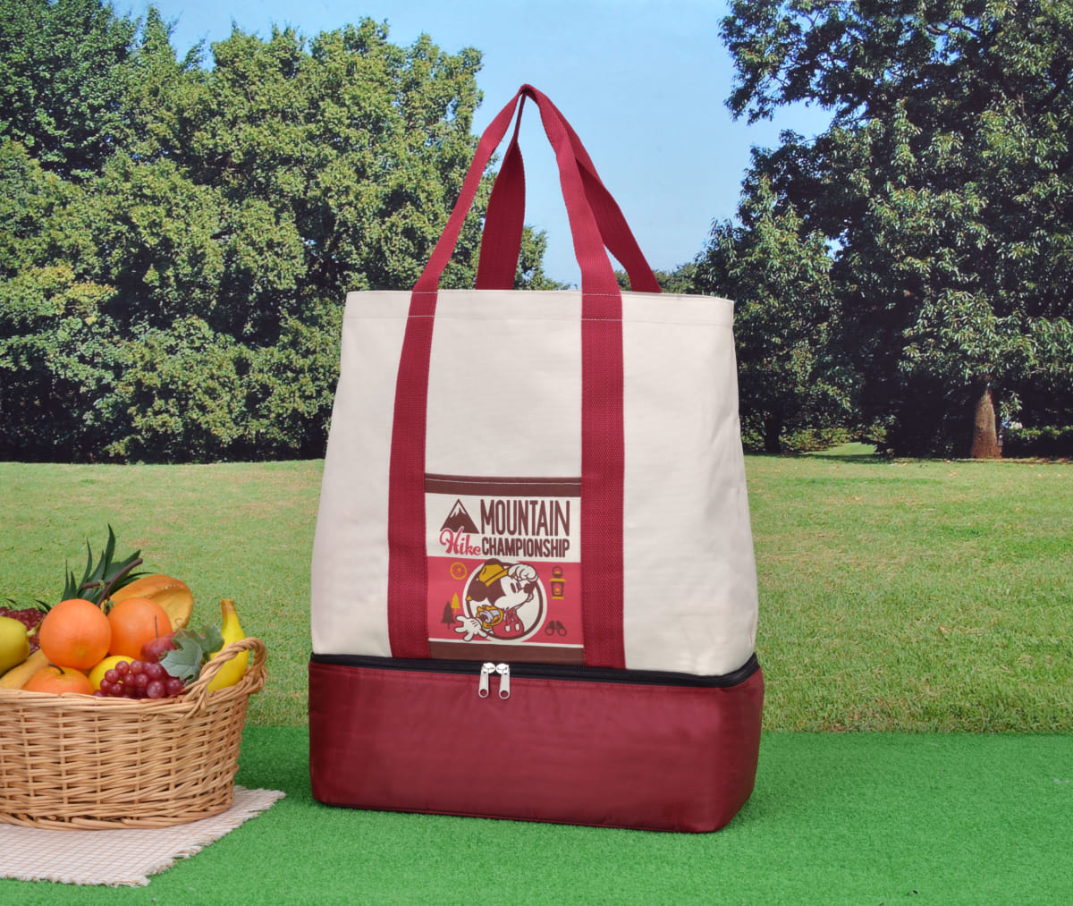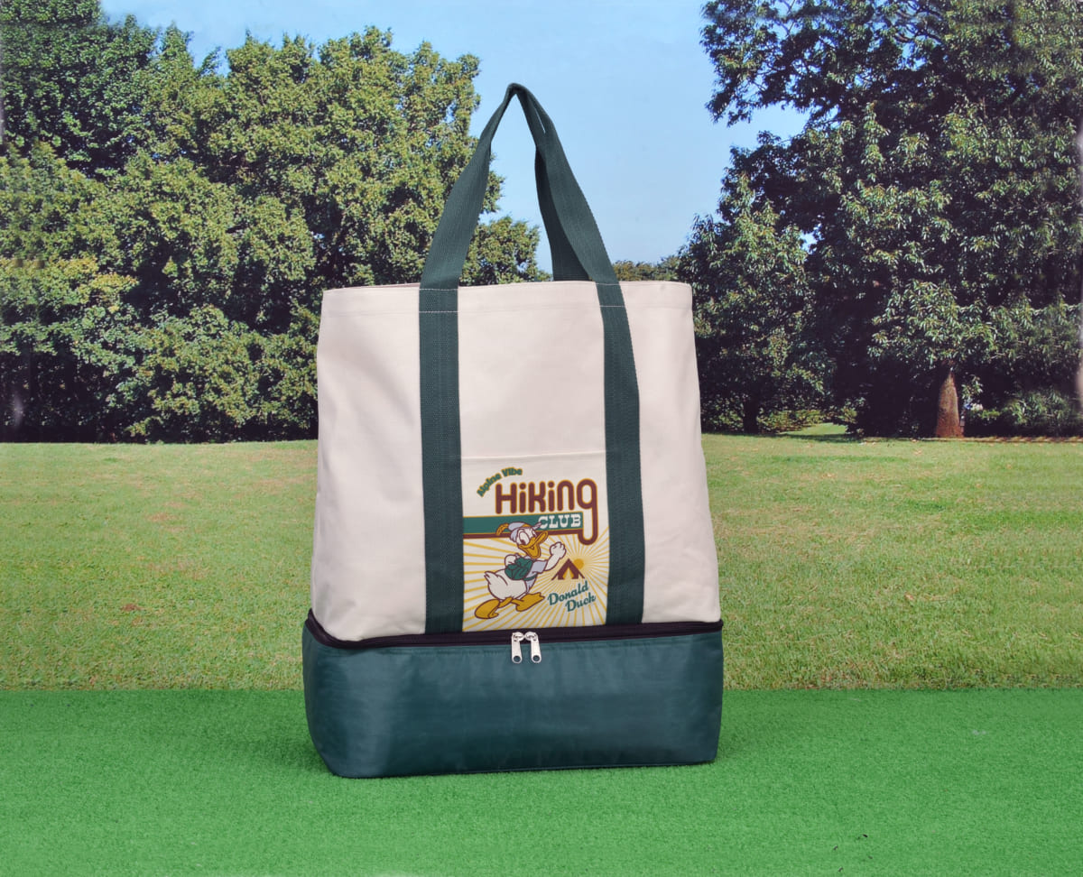 下部にファスナー付きの保冷スペースがドッキングされた、ピクニックなどのアウトドアにぴったりのトートバッグ。