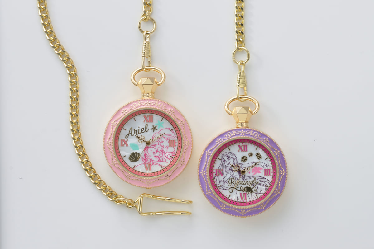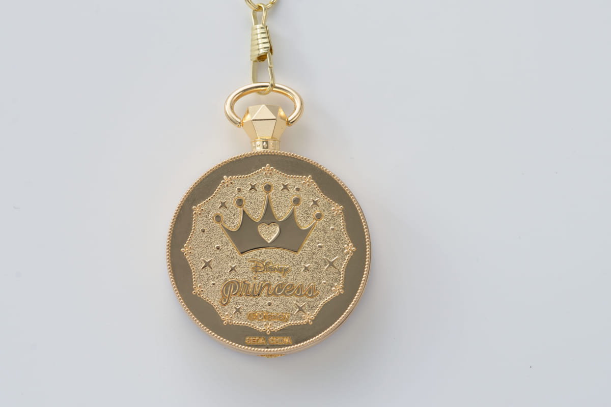 指輪をモチーフにしたケースがゴージャスな「ディズニープリンセス」の懐中時計。