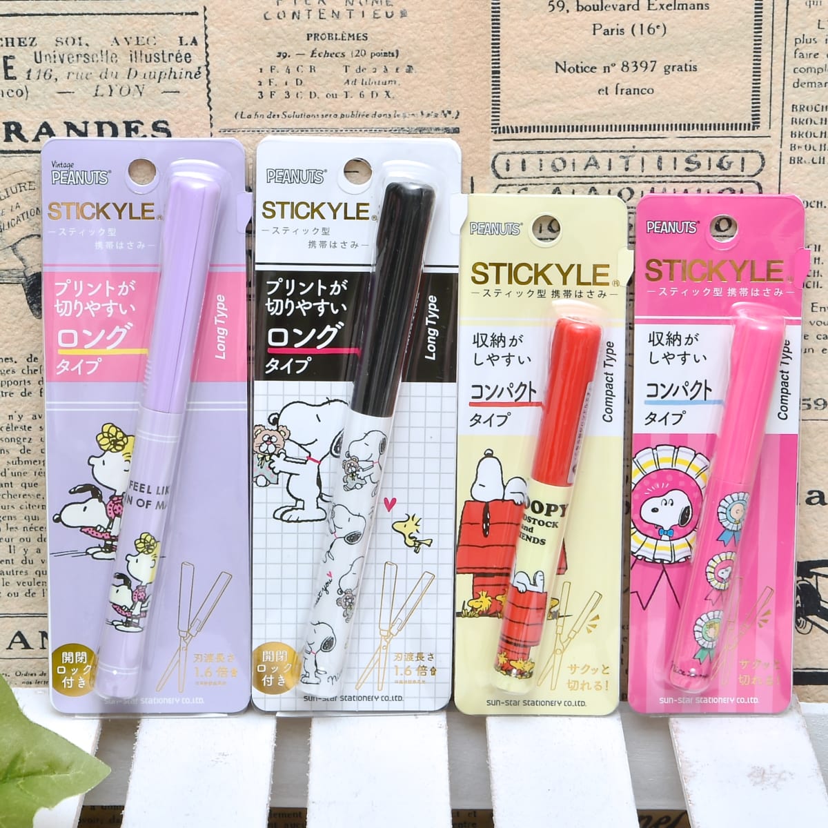 サンスター文具のスヌーピーデザイン「スティッキールはさみ」は、全国の文具取り扱い店、Amazonなどで販売中です☆