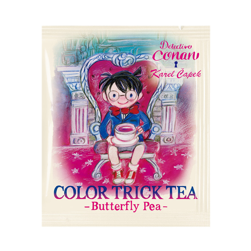 ハーブのバタフライピーを使用した、時間の経過と共に色が変わる「江戸川コナン カラートリックティー」
