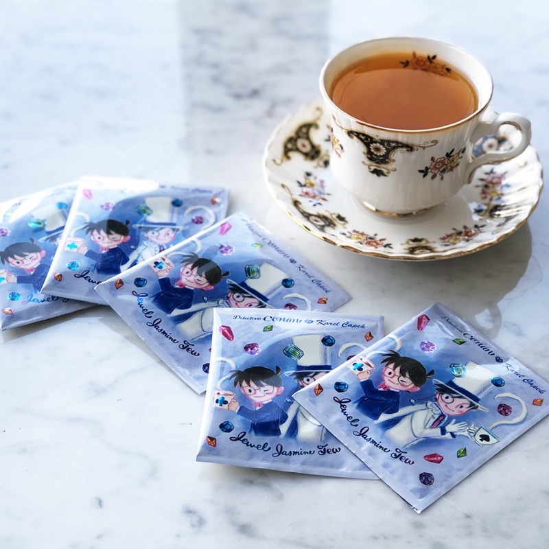 『名探偵コナン』と「カレルチャペック紅茶店」がコラボしたコラボ紅茶シリーズに、最新作「宝石ジャスミン紅茶」が仲間入り。
