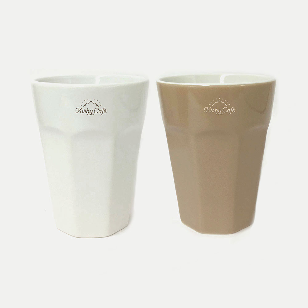 カフェのロゴが入った陶器タンブラーは、2タイプを用意。