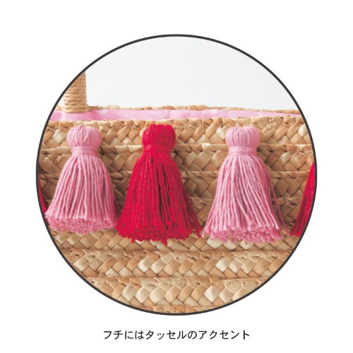 バスケットのフチにはカラフルなタッセルがアクセントで施されています。