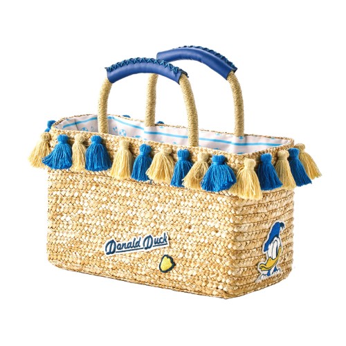 イメージカラーのブルーとイエローのタッセルをあしらった「ドナルドダック」デザインの収納バスケット。