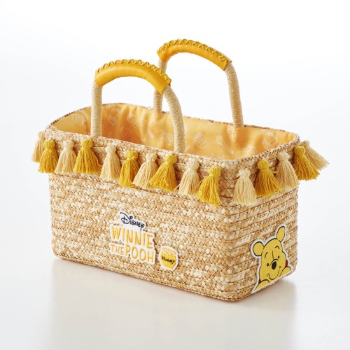 イエローのタッセルがあしらわれた「くまのプーさん」デザインの収納バスケット。