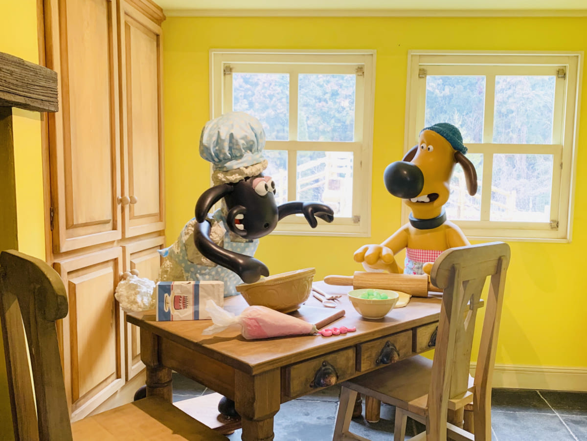 「ショーン」や、仲間のひつじたちが夜に眠る小屋は、内装だけでなくトタン屋根から外壁までリアルに再現されています。