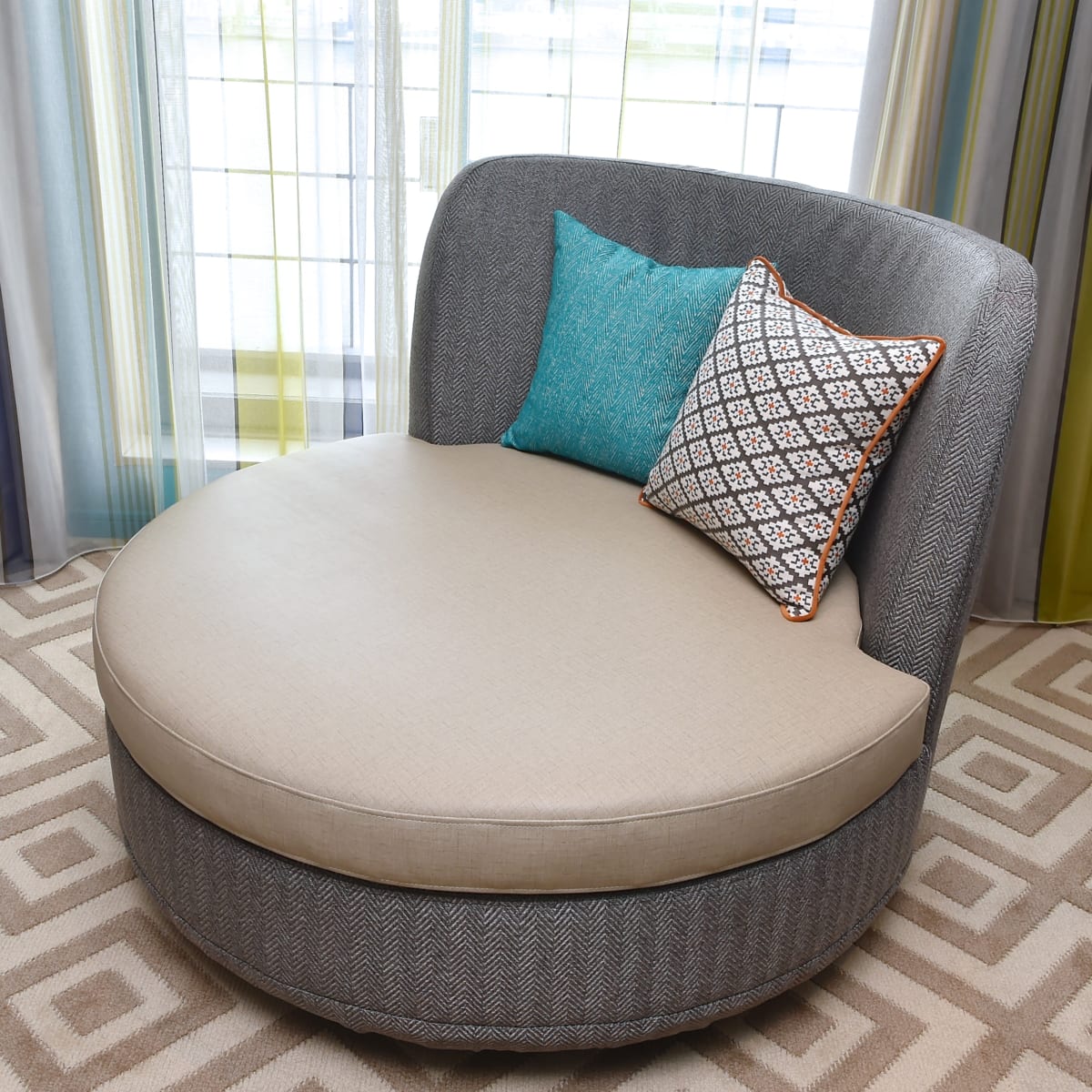 窓辺には円形のかわいいソファーと、