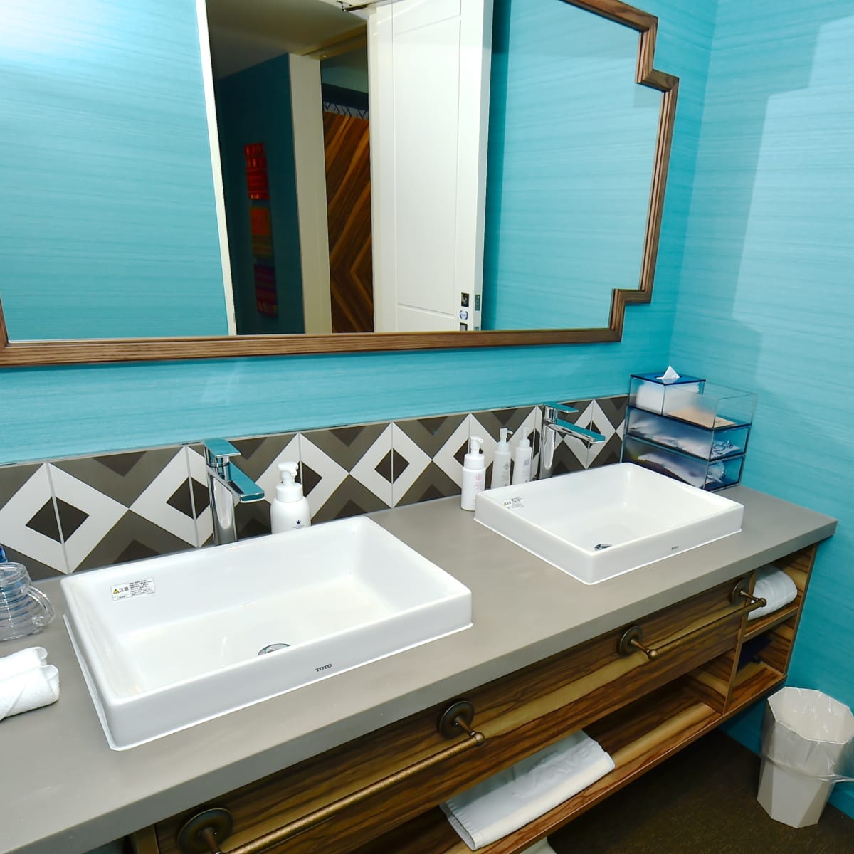 デラックスコーナー(46平米、ハーバーサイド)は、洗面台がダブルボウルに。