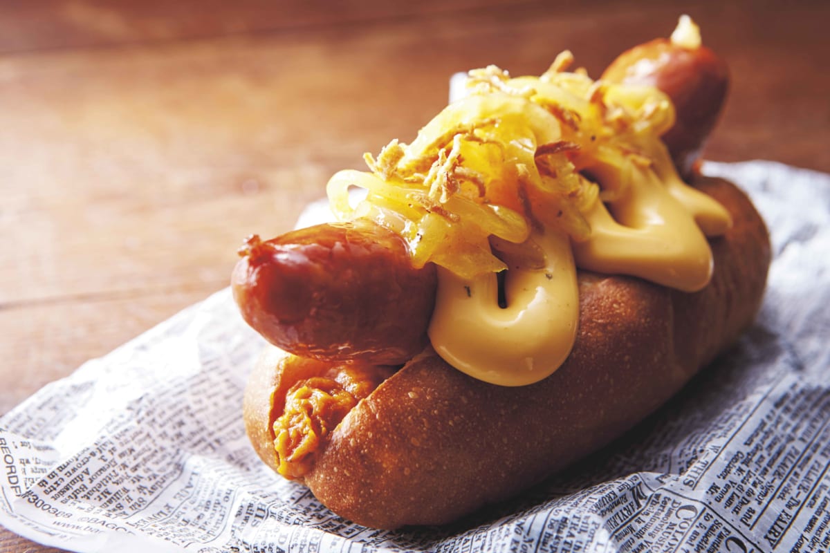 インドをイメージしたカレー味のホットドッグ。