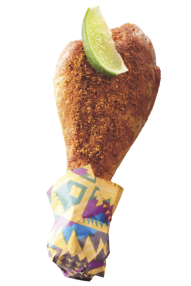 南米をイメージした、ケイジャンパウダーのたっぷりかかったターキーレッグ。
