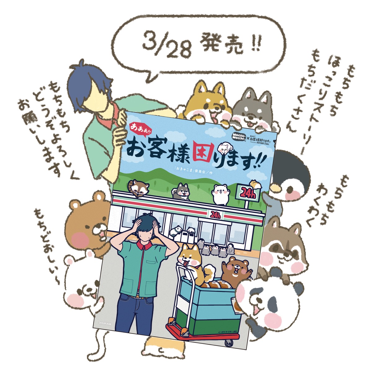 コンビニ店員“ボク”ともちもち困ったどうぶつさんたちとのドタバタな毎日を綴ったTwitterで大人気の『あああ!!お客様困ります!!』