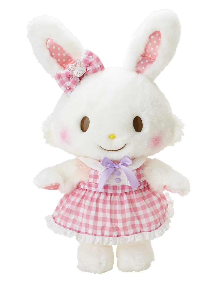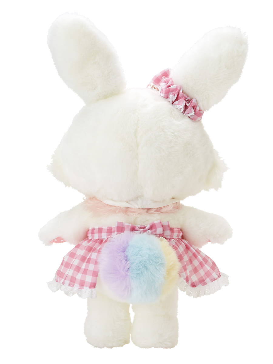 サンリオオンラインショップ各店にて販売される、色違いのピンクのワンピースとシュシュを着た「メルメルドール(ホワイトメル) 」