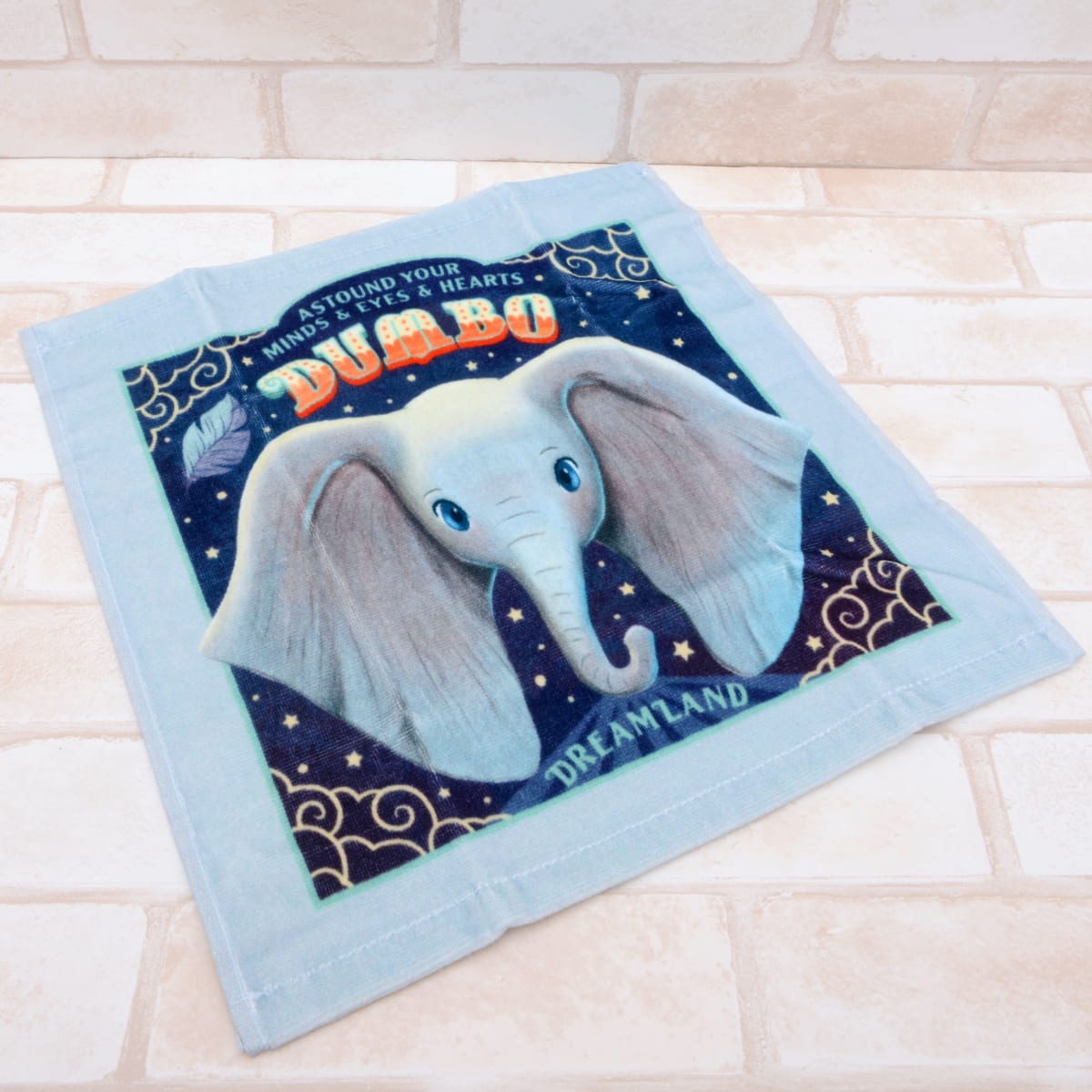 「ダンボ」のお顔が大きく描かれたハンドタオル。