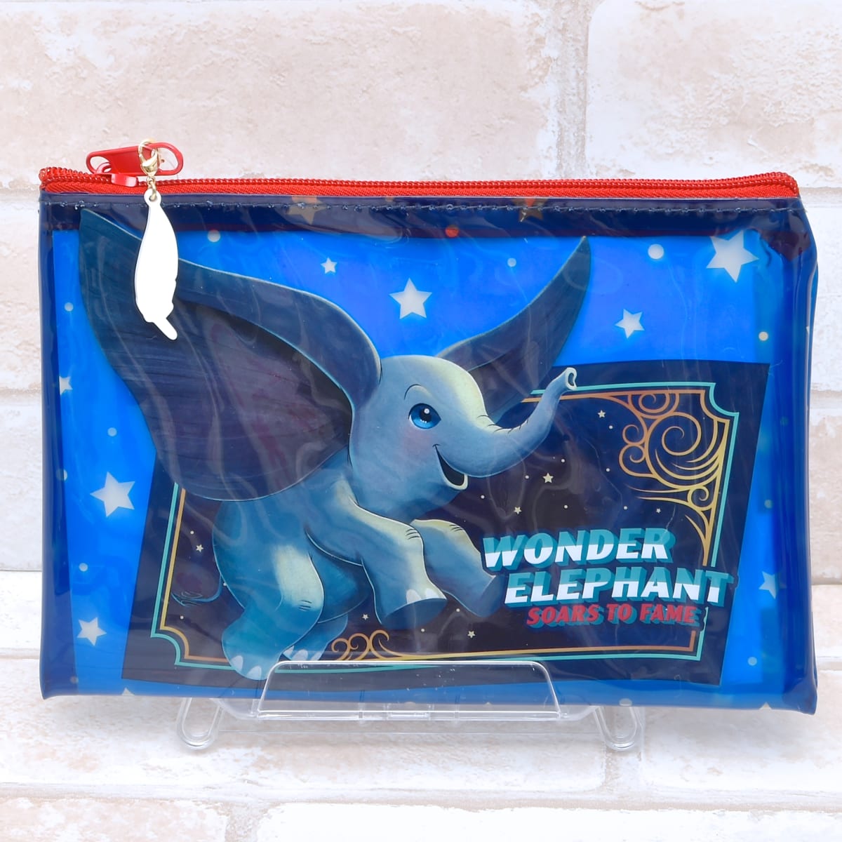 大空を飛ぶ「ダンボ」のクリアポーチ。