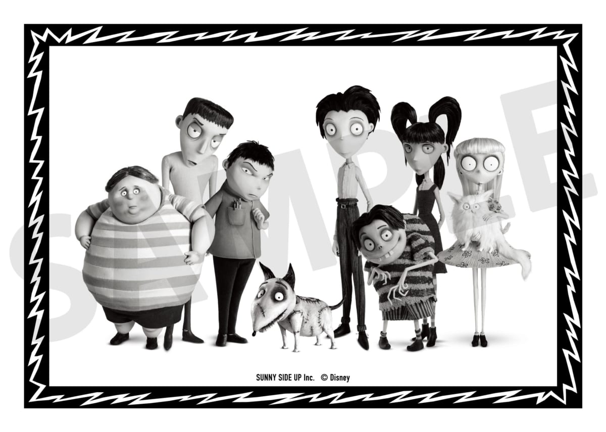 『フランケンウィニー』に登場する個性的なキャラクターたちが集合したアートなどが登場します。