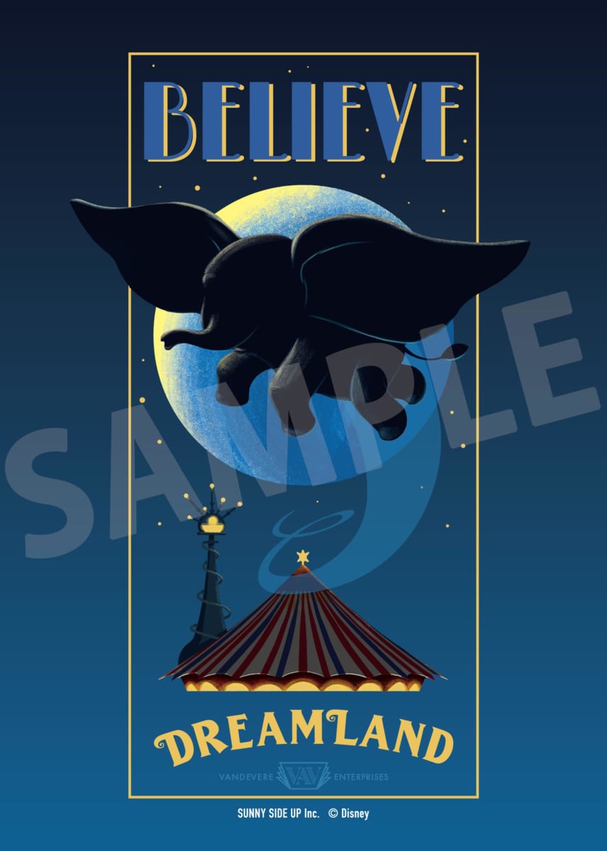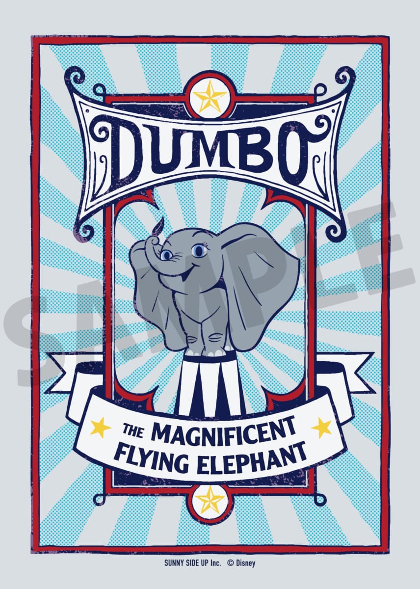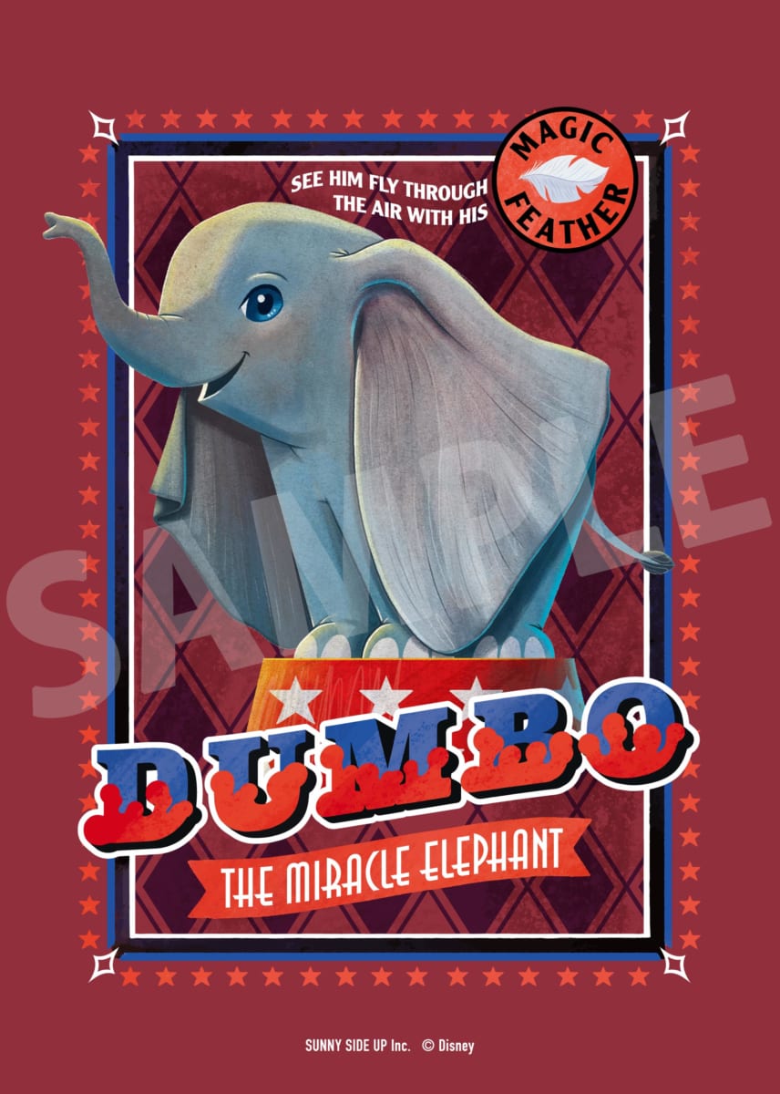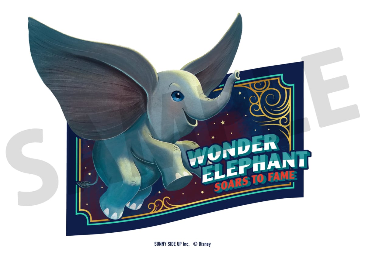 “魔法の羽”を鼻で持つ「ダンボ」がポップなイラストで表現されたブロマイドなど、全10アートが登場します。