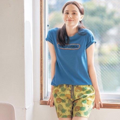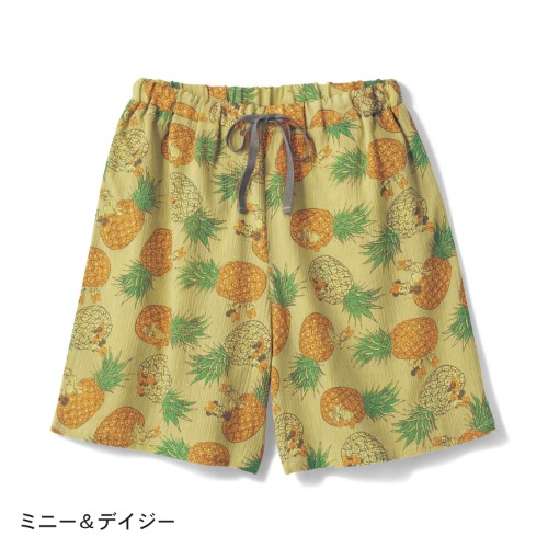 パイナップル柄がインパクト抜群な「ミニー&デイジー」デザインのショートパンツ。