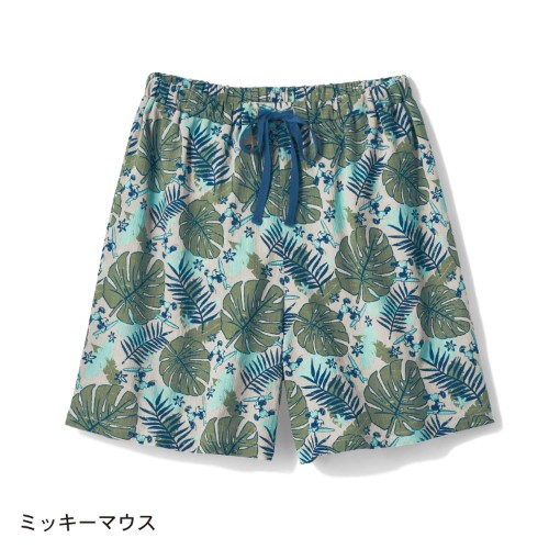南国感漂う「ミッキーマウス」デザインのショートパンツ。