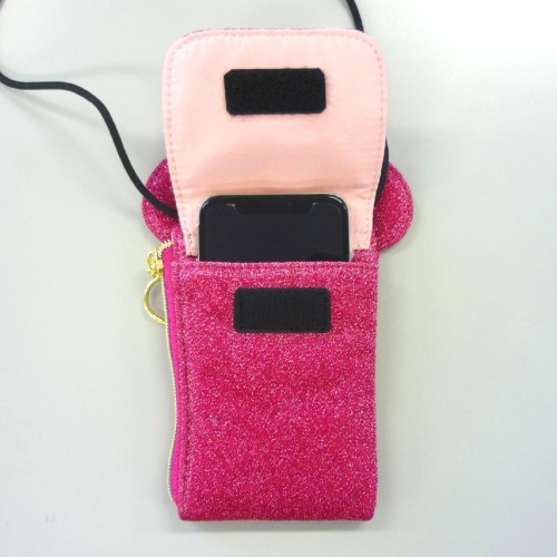 キラキラ素材のネックホルダー スマホ収納