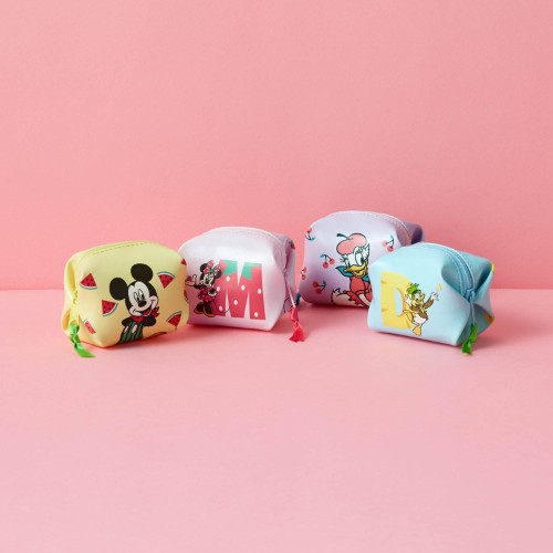 イエローの「ミッキーマウス」と、ピンクの「ミニーマウス」のポーチセット。
