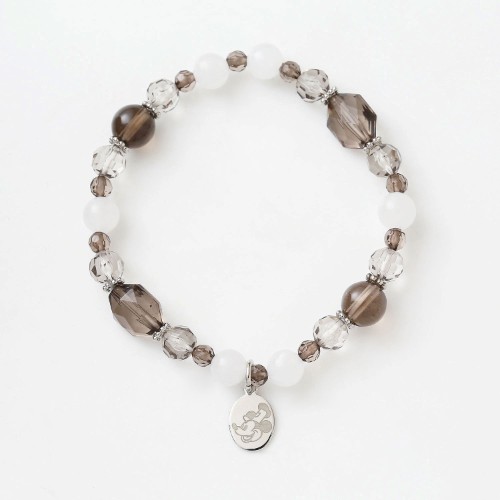 キャラクターのチャームが付いた、天然石と樹脂ビーズのブレスレット。