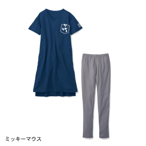 Vネック半袖ワンピース&リブレギンスパジャマ ミッキー