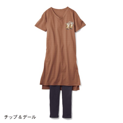 Vネック半袖ワンピース&リブレギンスパジャマ チップ&デール