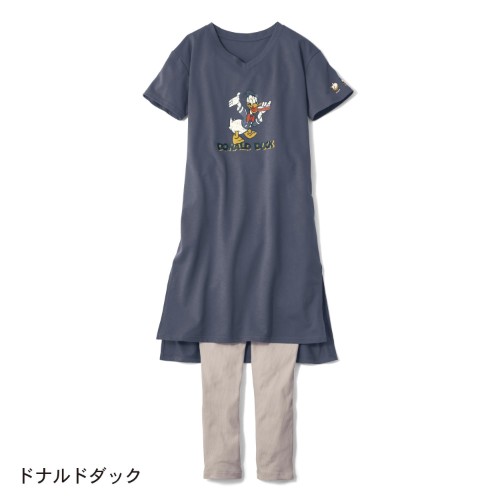 Vネック半袖ワンピース&リブレギンスパジャマ ドナルド