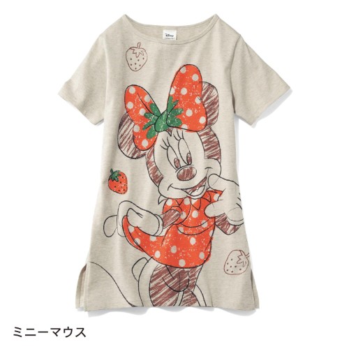 イチゴモチーフの「ミニーマウス」デザインのTシャツ。