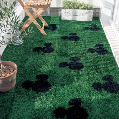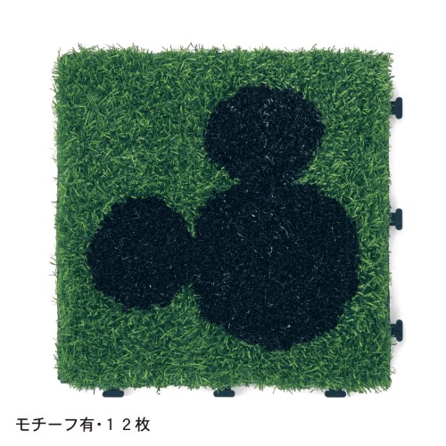 ミッキーモチーフを混ぜた天然芝の風合いとふわふわの踏み心地を再現した可愛らしい人工芝。