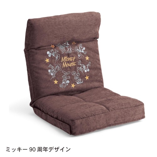 シックなブラウンを基調とした「ミッキー90周年デザイン」の座椅子。