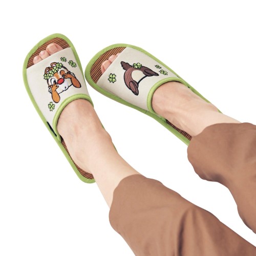 ひんやりサラッとした履き心地が楽しめる「チップ&デール」デザインのスリッパ。